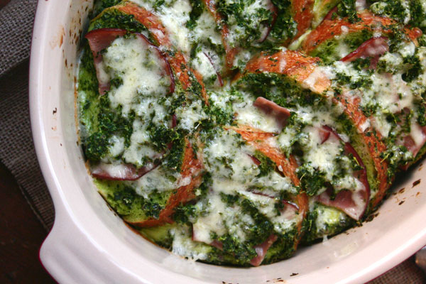 We made a half recipe with kale to use up the last of our Easter ham. We loved it! It smells really good while baking, too.